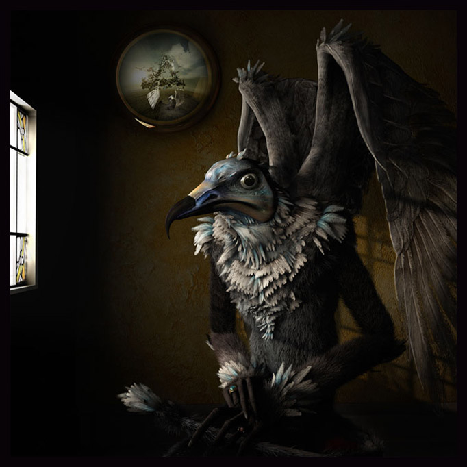 The works use 3D and photographic compositing to create impossible vistas which speak in a language of metaphor, and of dreams.