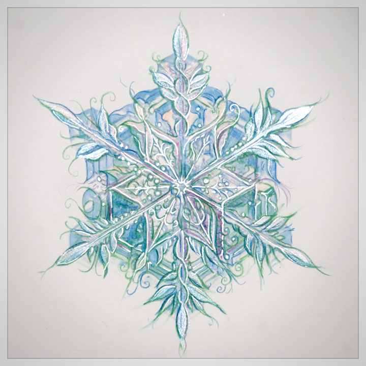 Card Illustrations based on snowflakes. (Coloured Pencil, Ink, Acrylic)