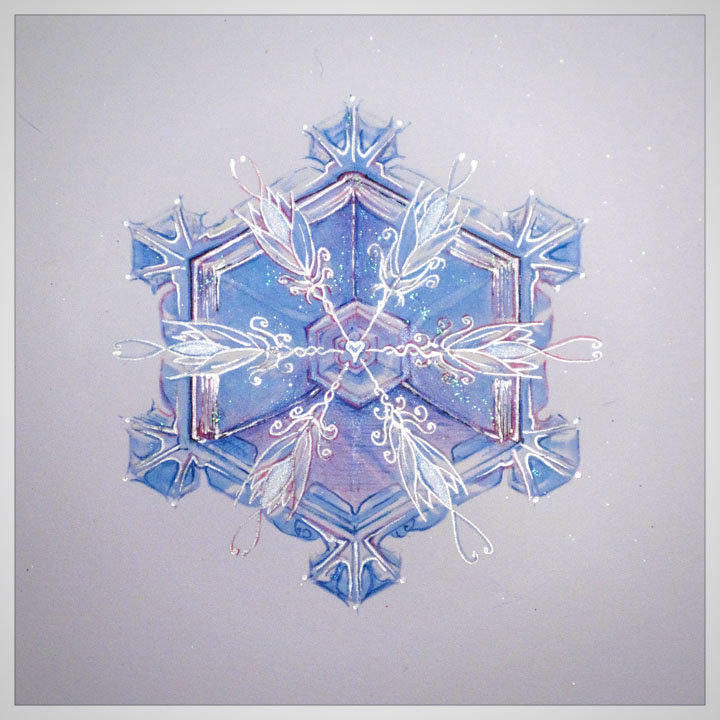 Card Illustrations based on snowflakes. (Coloured Pencil, Ink, Acrylic)