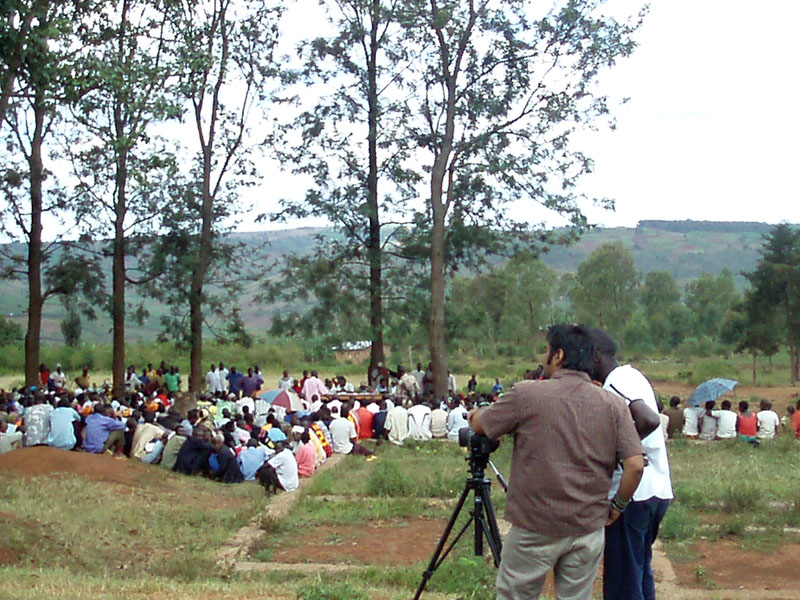 - Director of Photography Heeten Bhagat surveys the scene of the village gathered for the Gacaca court at Rubona-